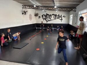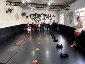 As atividades, ministradas por instrutores qualificados, combinaram treinos práticos com ensinamentos sobre os valores do esporte, como respeito, perseverança e trabalho em equipe. Os participantes tiveram a oportunidade de desenvolver habilidades físicas, melhorar a concentração e fortalecer a autoestima, vivenciando o impacto positivo do Muay Thai em suas vidas. O evento foi um verdadeiro sucesso, unindo a comunidade em momentos de aprendizado, superação e conexão.